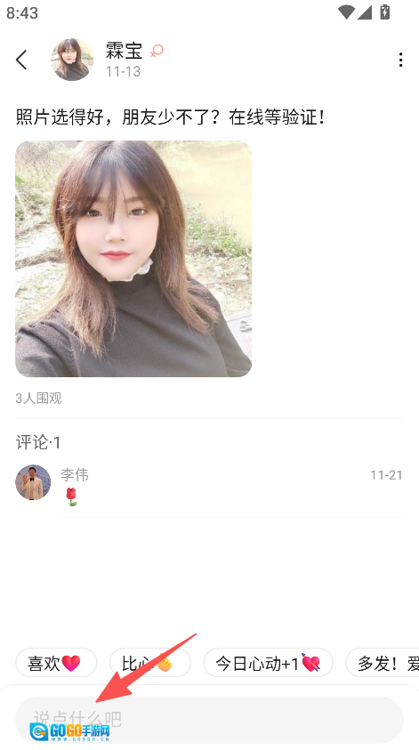 当看到感兴趣的动态时,点击进入其详情页面,就能开展评论互动。