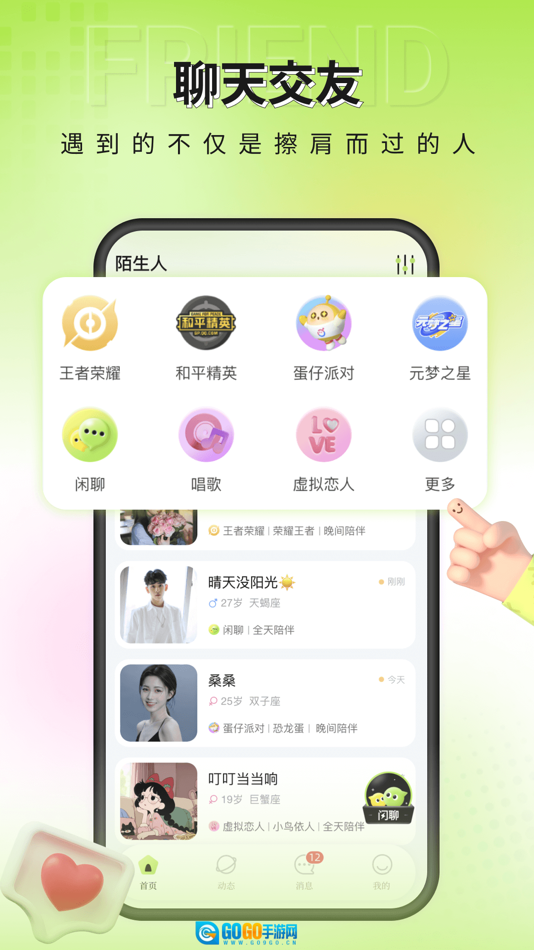 社交场景别出心裁,消弭陌生人之间的隔阂,通过技能契合、情感互动等多元维度推动用户沟通。