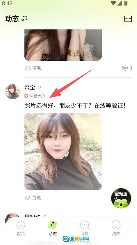 点击发布动态,分享你的生活点滴,还能参与技能合拍活动,拓展你的社交圈子。