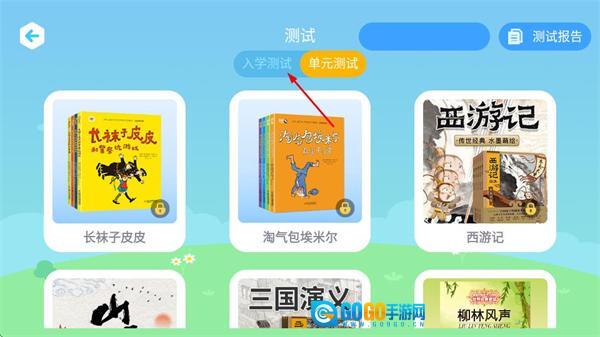 1、在陶陶悦读主页面,点击测试选项,进入测试分类页面。