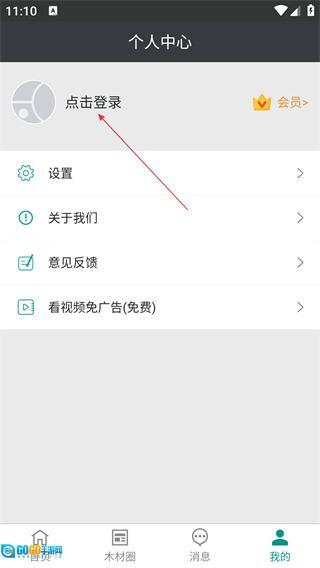 在个人中心页面,点击【点击登录】区域,即可进入账号登录相关操作界面。