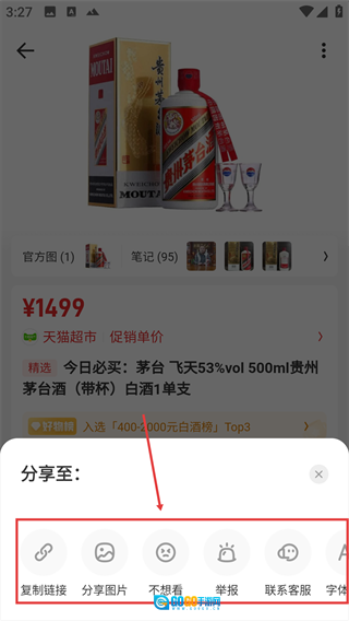 在商品详情页,点击页面底部的“分享”按钮后,会弹出一个包含多种操作选项的分享菜单。