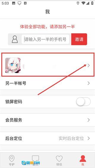 在主界面底部的导航栏里找到【我】这个按钮并点击它,就能进入个人中心页面,在这里可以体验添加另一半之类的功能服务。
