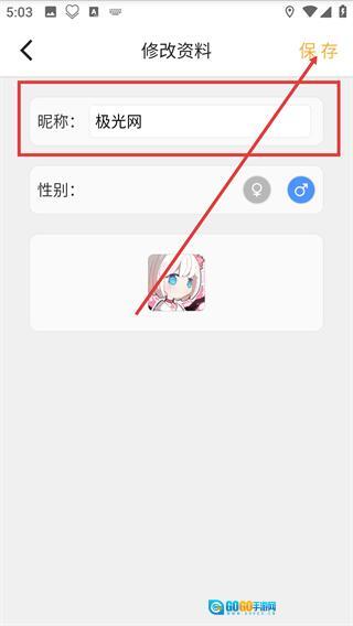 在资料修改页面编辑【昵称】等相关信息后,点击页面右上角的【保存】按钮,就能完成个人资料的更新啦。