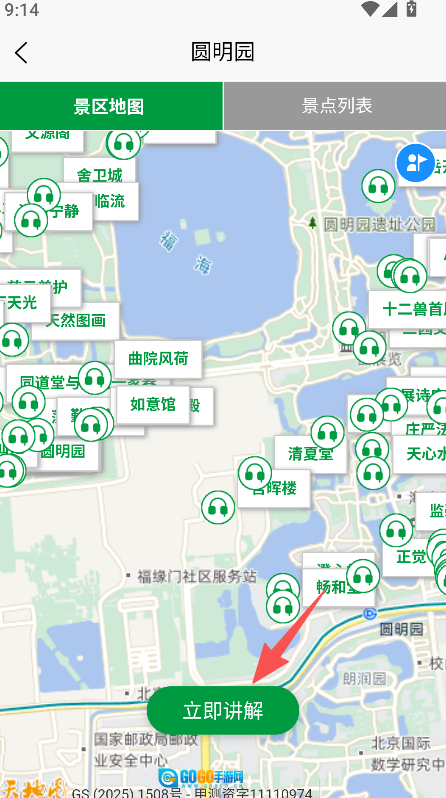 切换至景区地图板块,点击立即讲解获取导览服务。