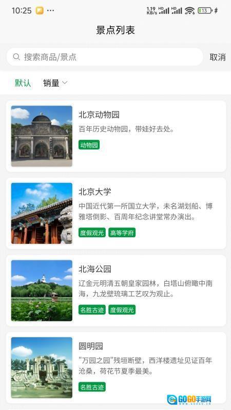 具备北京景区展示功能,用户可选择相应景区,进而获取该景区的基础介绍及展示信息。