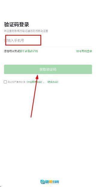 2、在注册登录页面填写手机号码后,点击获取验证码。