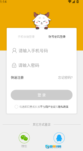 打开《成长派》,可选择微信或QQ方式登录。