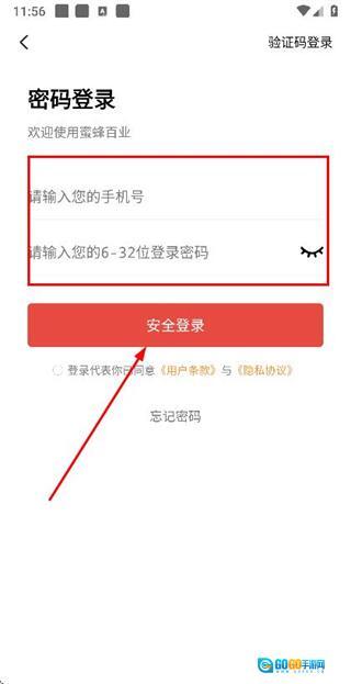 3、进入登录页面后,依次填写手机号与密码,勾选相关协议,随后点击安全登录按钮,即可完成账号登录流程。