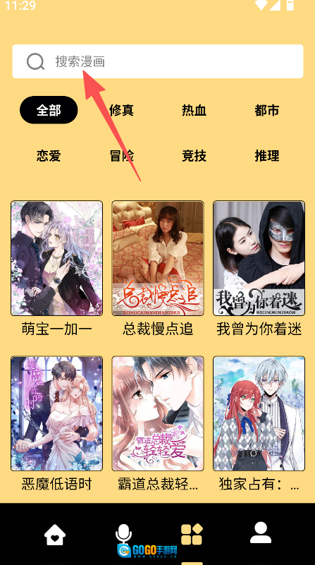 打开软件后,点击顶部搜索框可搜索漫画。