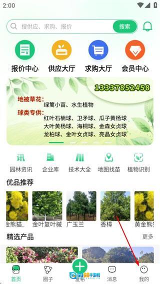 1、在中国园林网首页,点击底部的“我的”选项,即可进入个人中心页面。