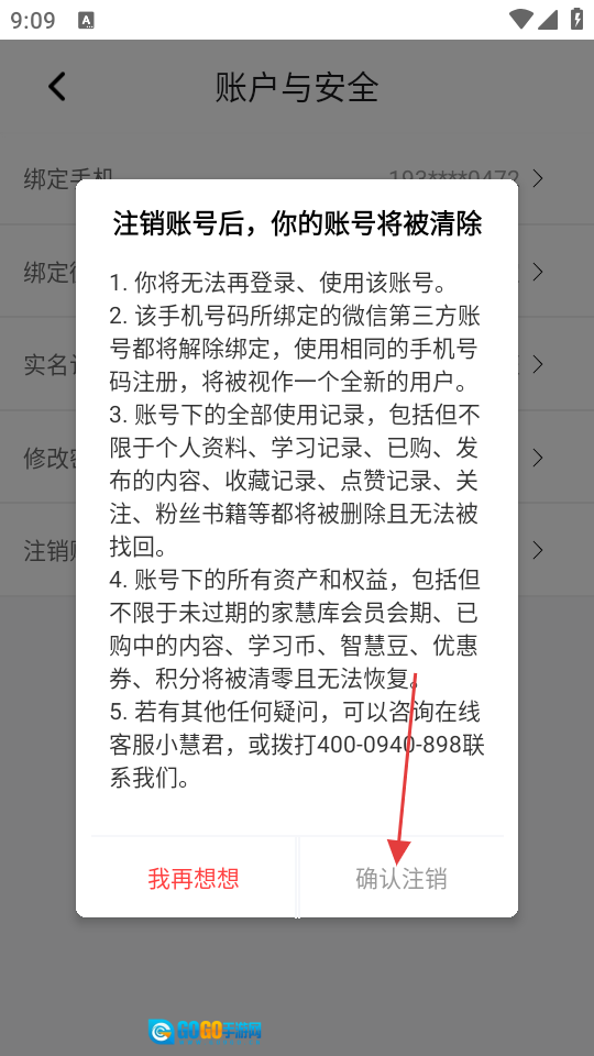 在提示框内,点击【确认注销】按钮,就能依据提示步骤完成账号注销操作。