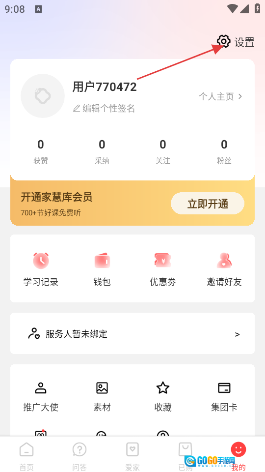 在“我的”页面,点击右上角的【设置】按钮,进入设置界面。