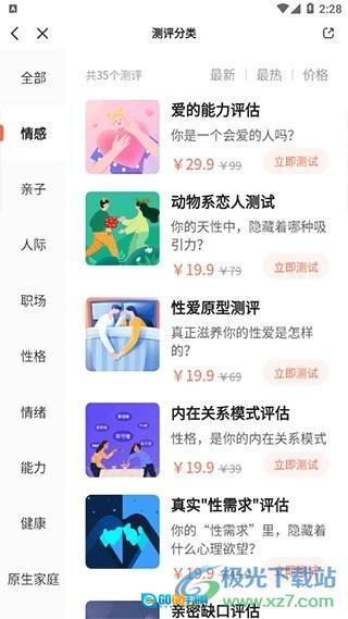 进入心理测评功能后,能看到存在多种可用于测试的类型。