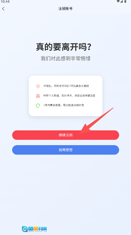 在确认页面仔细阅读注销须知后,点击“继续注销”按钮,即可完成注销申请的提交。