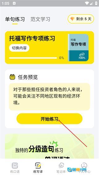 点击底部【练写译】,可进入写译练习页面。