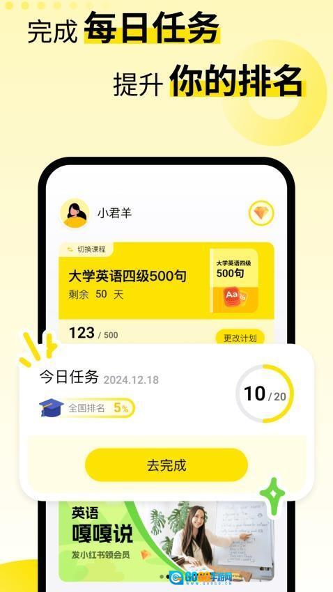 平台设置了每日任务打卡功能,以此激励用户持续学习并养成良好的学习习惯。借助每日打卡任务,用户不仅可以有条理地巩固单词和语法知识,还能逐步提高自己的学习排名。