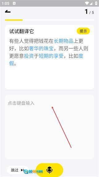 在练习界面按照提示完成翻译任务,能够借助输入框提交练习内容。