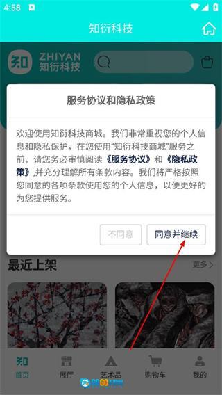 在服务协议与隐私政策的弹窗界面,点击“同意”按钮后,即可进入应用的首页。