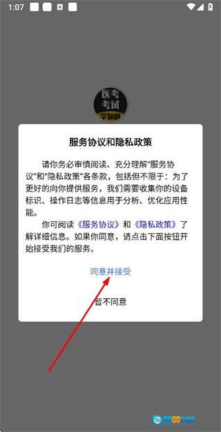 1、在使用协议隐私政策弹窗中点击同意并接受按钮,进入登录页面。