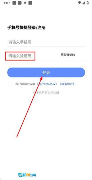 2、在手机登录页面填写手机号,勾选协议后,点击获取验证码。