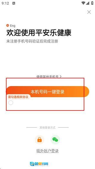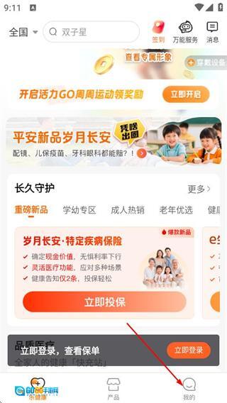 在平安乐健康的首页,点击底部的“我的”选项,即可进入个人中心页面。