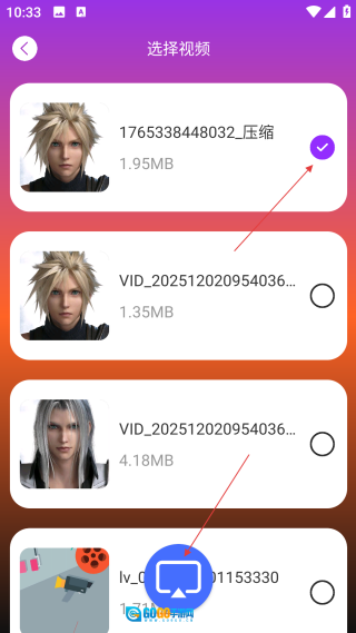 在视频选择界面,找到并选中【目标视频】,接着点击【投屏按钮】,即可启动视频投屏流程。
