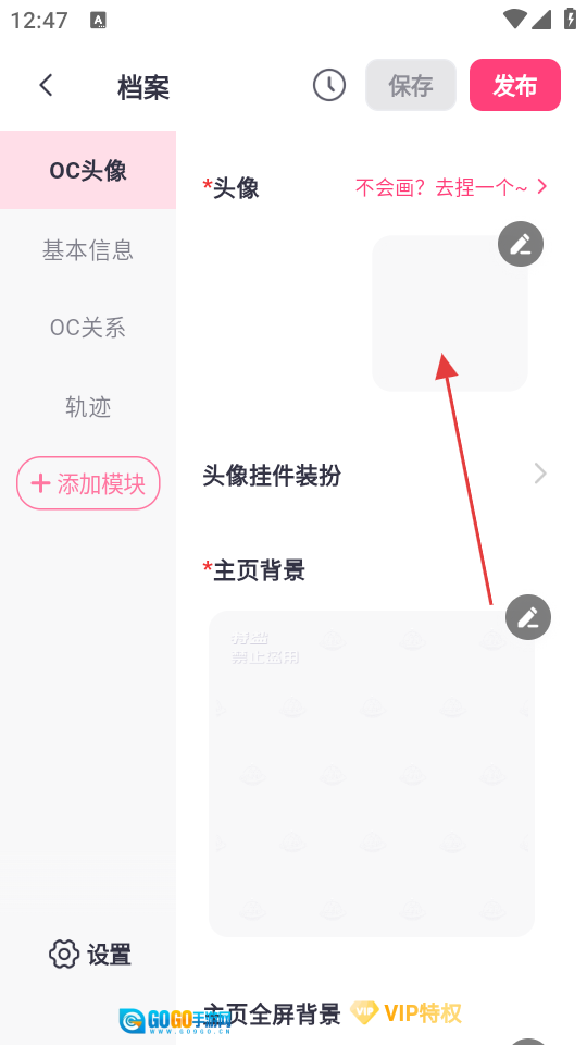 在OC档案编辑页面完成头像等信息的设置后,点击“保存”或“发布”按钮,即可完成OC的创建与发布操作。