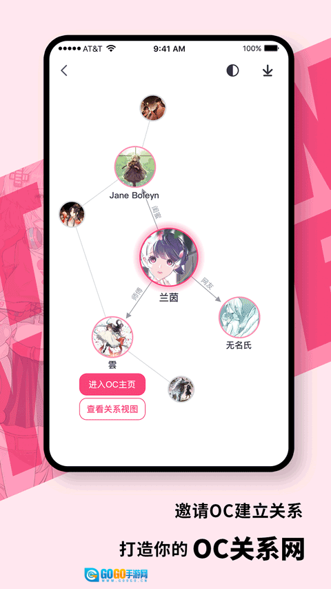 开放全站角色互动网络,用户能够为自己创建的角色与其他角色构建关联,还可以查看完整的角色关系图谱。