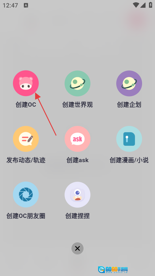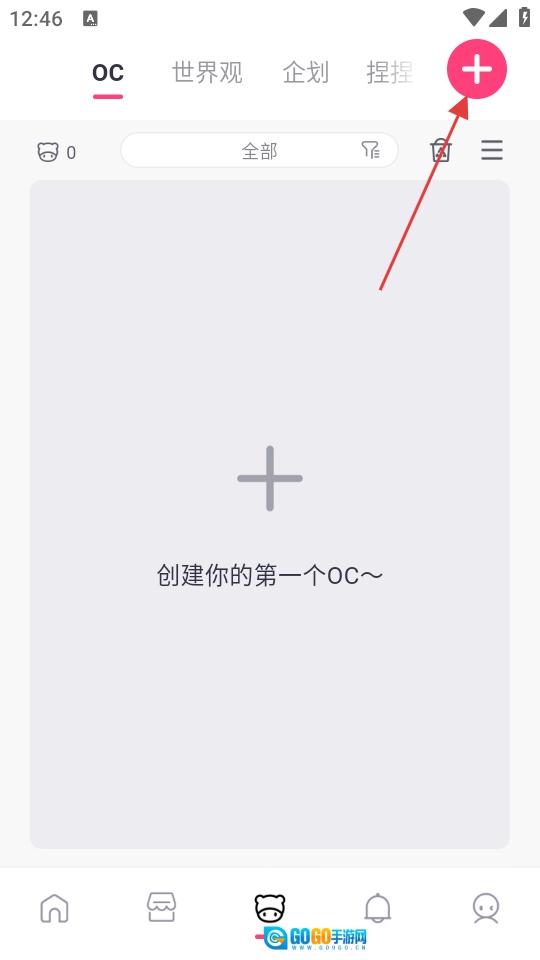 当功能选项弹窗出现后,点击“创建OC”,即可进入OC档案的编辑界面。