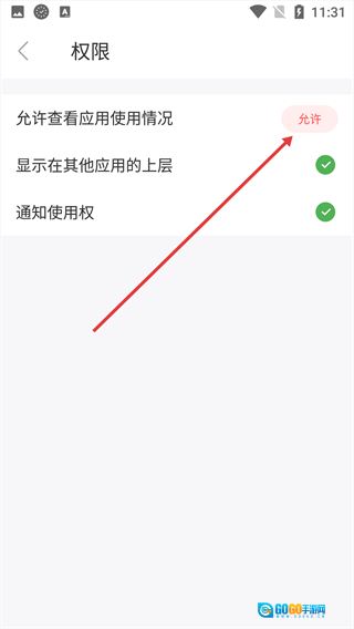 进入权限设置界面,找到“允许查看应用使用情况”这一选项,点击其右侧对应的“允许”按钮。