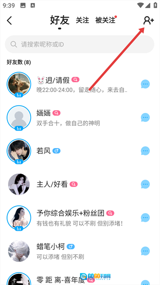 点击右上角的加号按钮,进入添加好友的操作页面。