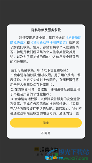 打开软件后会弹出用户隐私协议,我们仔细阅读并了解相关内容后,点击同意按钮就可以了。