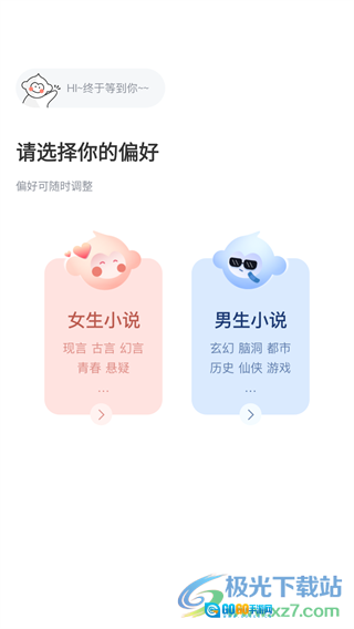 之后选择你喜欢的阅读类型,有男生和女生专区。