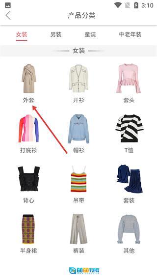 在【产品分类】页面,点击【外套】选项,就能进入外套商品的列表页面啦。