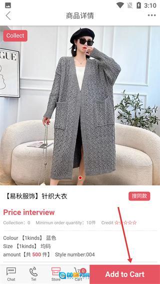 在大衣类商品的列表页面,点击【【易秋服饰】针织大衣】这一商品条目,就能进入对应的商品详情页面。