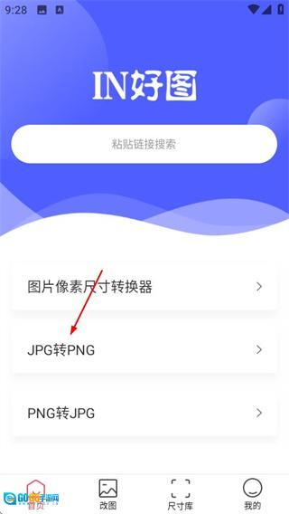 在IN好图的首页,找到并点击“JPG转PNG”这个选项,之后就能进入到选择图片的页面了。