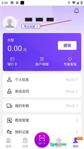 进入“我的”页面后,点击头像旁边的【马上认证】按钮。