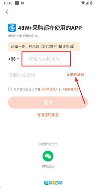 在登录页面输入手机号,勾选相关协议后,点击发送验证码按钮。