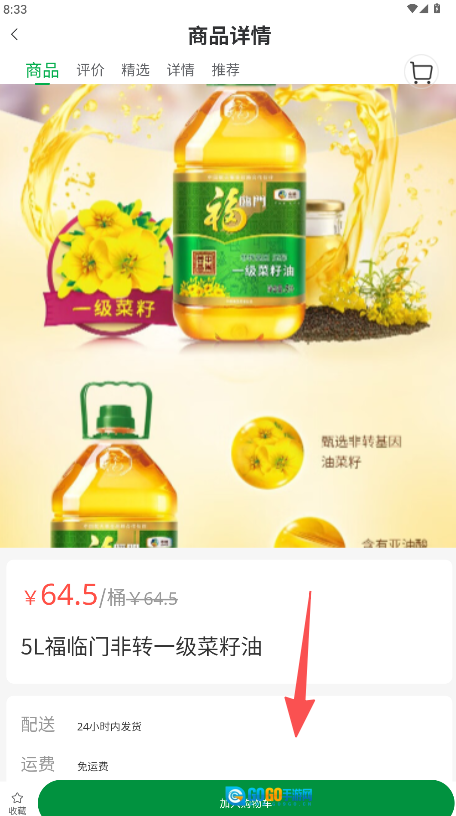 商品信息标注侧重于产地与规格方面,像5L装的福临门非转基因菜籽油,就能为消费者提供透明的选购依据。