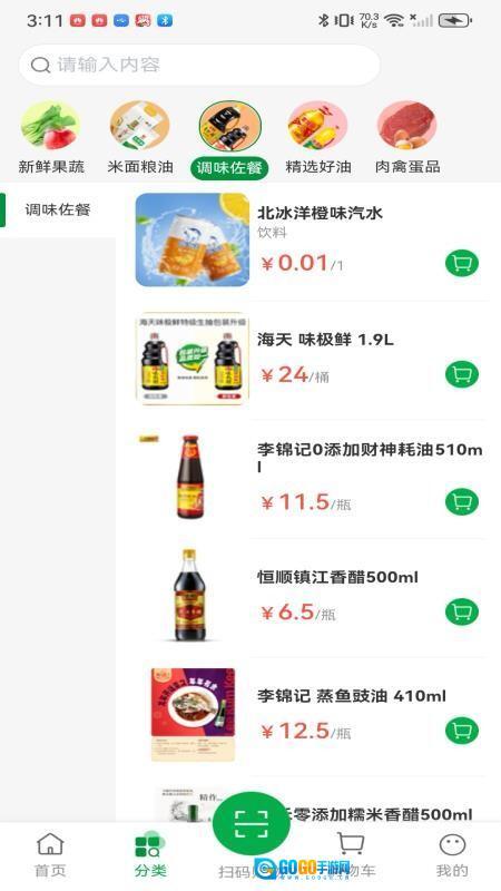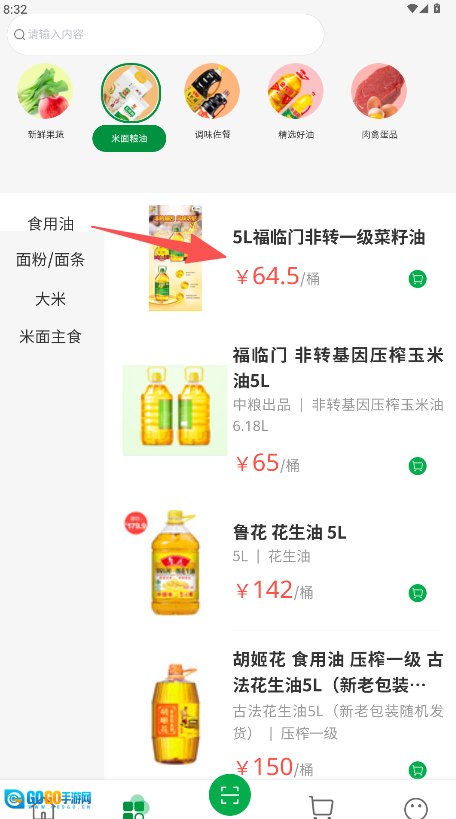 在软件首页的点击“米面粮油”图标。