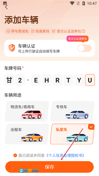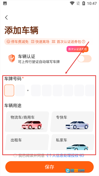 请填写必填的【车牌号码】,并选择对应的车辆用途类型。