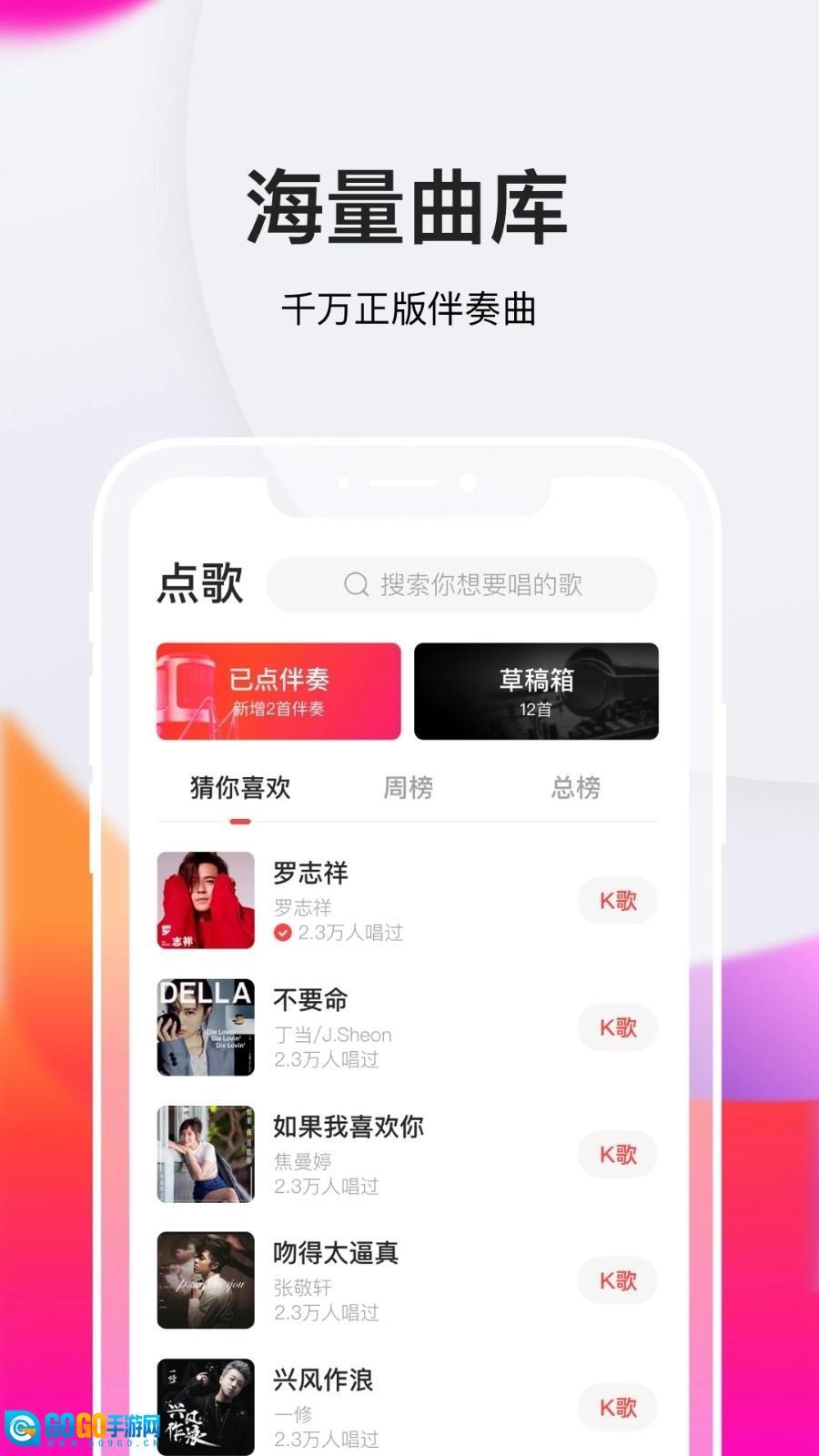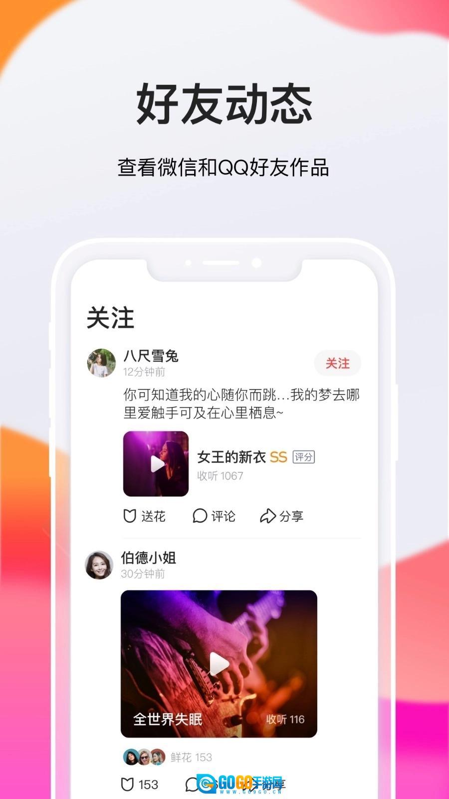 全民K歌是一款优秀的音乐互动平台,拥有海量正版曲库,同时还会推荐短视频平台上的热门歌曲。用户能够按照不同分类和曲风选择自己喜欢的音乐,简单点击就能播放,并且可以实时进行交流互动。在百余家唱片公司的助力下,平台收录了华语、欧美、日韩等多个国家和地区的流行金曲,构建起一个融合明星动态、趣味话题与活跃氛围的音乐社区,是集欢乐、聆听、观看、分享于一身的粉丝互动空间。欢迎热爱唱歌和听歌的朋友们前来体验。