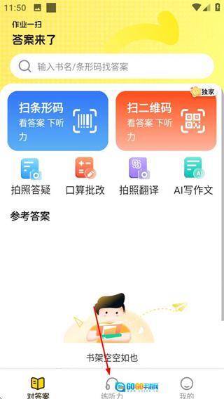 在答案来了的首页,点击页面底部的“练听力”选项,即可进入听力练习页面。