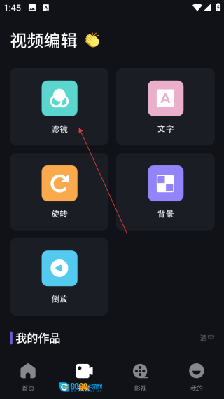 进入首页后,点击底部的【视频】选项,即可进入视频编辑的功能选择界面。