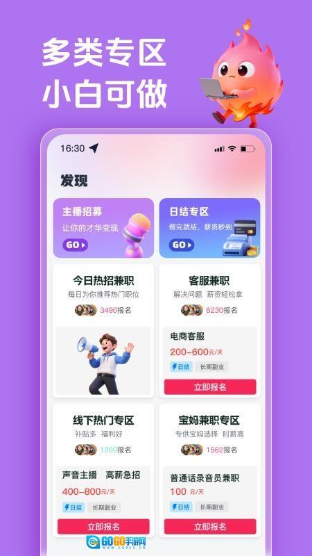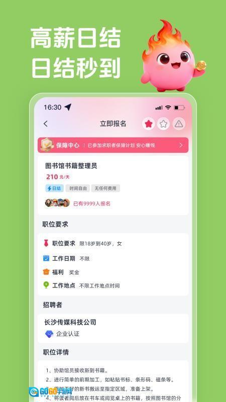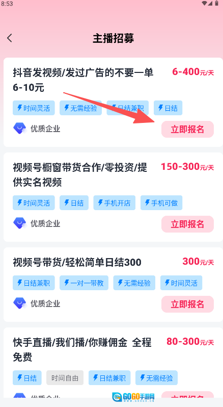 你可以在列表里查看兼职信息,确定好岗位后,点击下方的“立即报名”按钮。