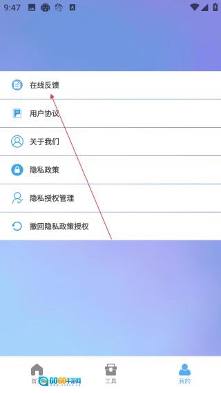 在个人中心页面,点击【在线反馈】选项,即可进入反馈内容的填写界面。