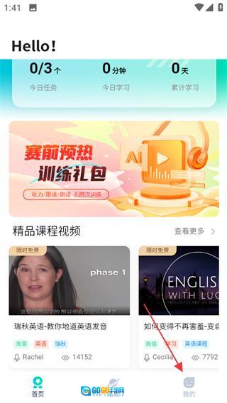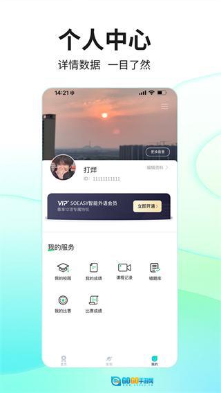 在SoEasy智能外语的首页,点击页面底部的“我的”选项,即可进入个人中心页面。