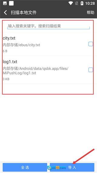 扫描结束后,从本地文件列表里选定目标文件,点击“导入”按钮即可完成文件导入流程。