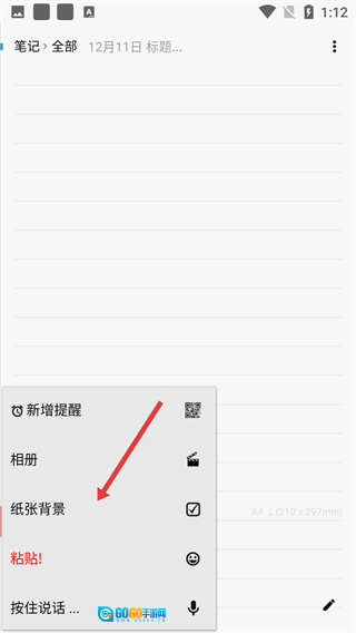 当功能菜单弹出后,点击“纸张背景”这一选项,即可进入背景设置的界面。